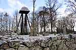 Kalvsvik sind die Reste des alten Friedhofs zu sehen, der jetzt öde liegt. Es ist ein idyllisch