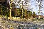 Steinmauern wurden alte und neuere Grabsteine aufgestellt. |