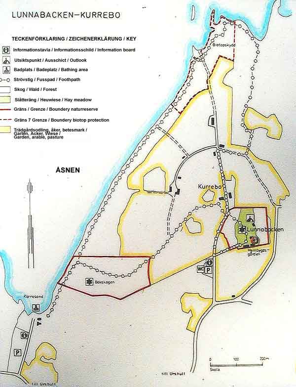 Lunnabacken: is an old heathen cult place which nowadays is a meeting place for the locals and visitors in Urshult. Here is the highest point in the parish (187 metres above the sea) and a breath taking view of lake Åsnen. Since decades is here also the manor of Odensvallahult now a folk museum. Close to Lunnabacken is Kurrebo. A path is leading to Kärrasand a camping place with a bathing area and a danceplace.